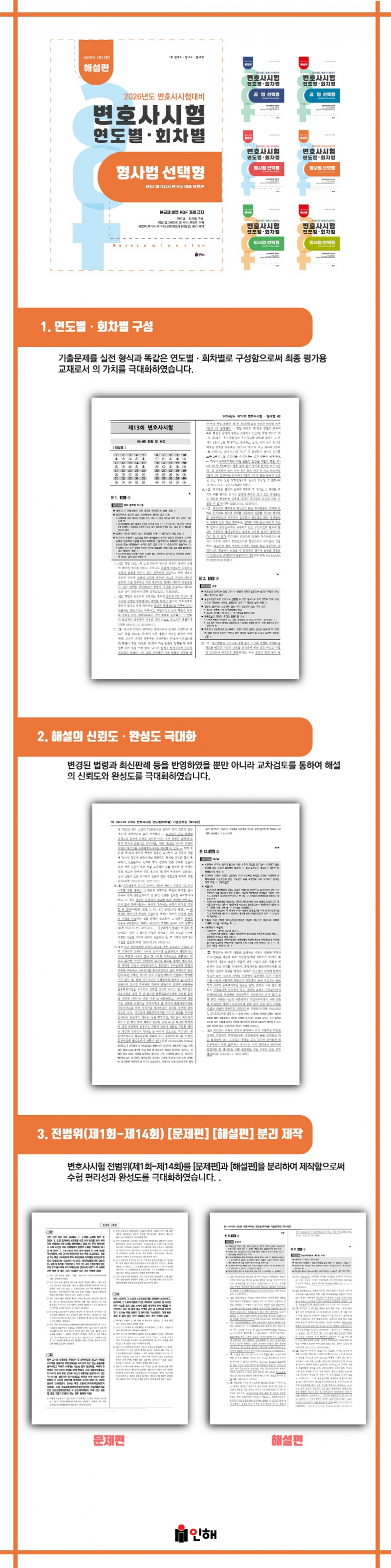 변호사시험 전범위(제1회-제14회)를 [문제편]과 [해설편]을 분리하여 제작함으로써 수험 편리성과 완성도를 극대화하였습니다.